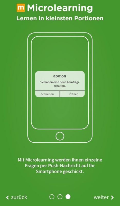 • Microlearning – nutzen Sie dieses Feature, um Fragen regelmäßig als „Push Notification“ zu erhalten. Das Lernen in kleinsten Lehreinheiten bereitet Sie gezielt auf den