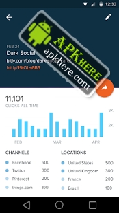 Bitly for Android is fully integrated with Bitly’s desktop experience. Copy, customize, and share your links straight from your phone and view top performing links on-the-go!SHORTENScrap long links! Shorten and brand your links to increase clicks while maintaining the tracking parameters you desire.MEASUREShare your links and let us help with the rest. See channel data, uncover dark social, and learn when and where your audience is most engaged - all in one simple dashboard.OPTIMIZEConnect your social networks for easy sharing through Bitly across social, SMS, display, social, and other channels. Collect insights on your performance and optimize your efforts to fit your audience needs.