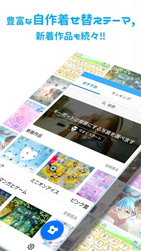 Type Q is a very user-friendly Japanese keyboard, with very exquisite themes, a great number of cute and interesting kaomojis, and many stickers of different styles. And