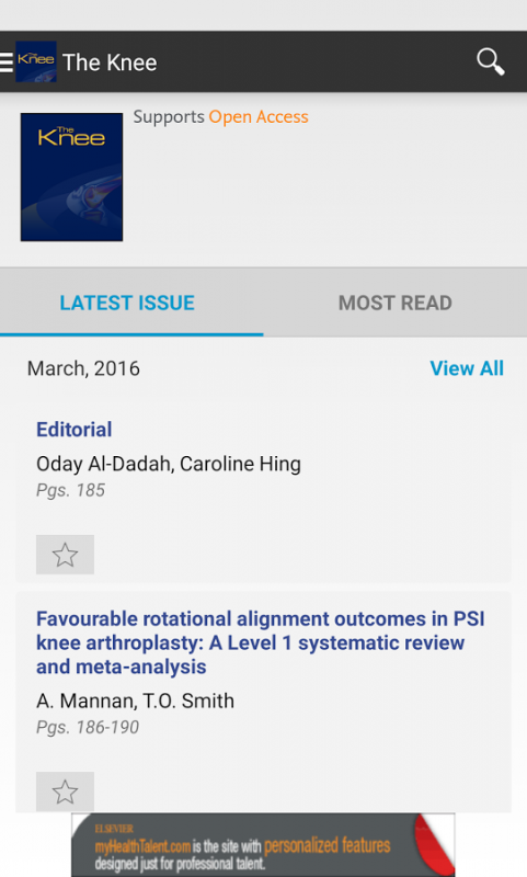 It just got a whole lot easier to keep up with original research of the knee. The Knee app brings you the convenience of reading your favorite journal from anywhere in the