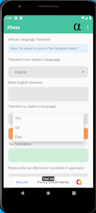Khaya is the first translation app for Ghanaian languages relying on Machine Learning and Artificial Intelligence. It has expanded to other African