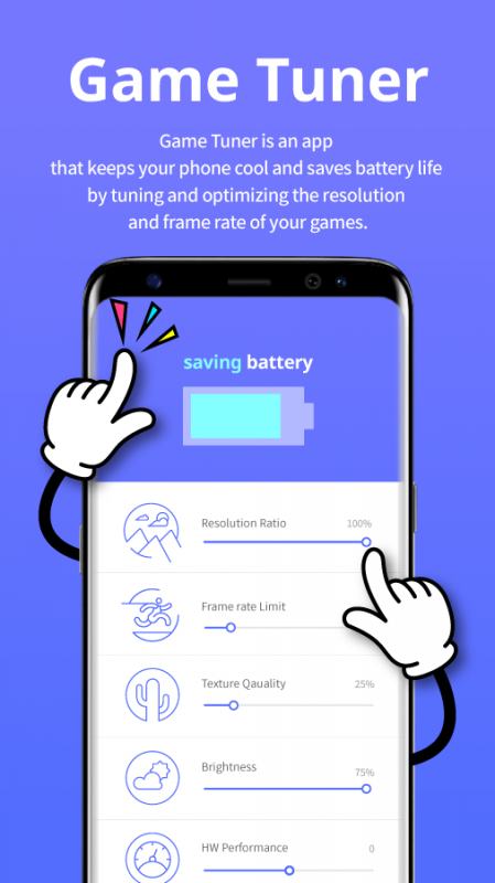 Game Tuner is advanced setting app. It enables you to change the resolution and frames per second settings in mobile games that require tuning for different Android