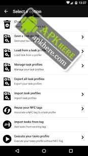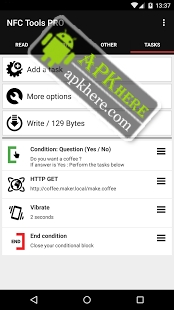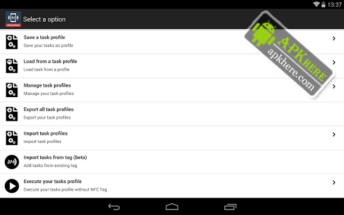 - Tasks require this additional free application : http://getapp.nfctasks.wakdev.com/