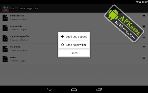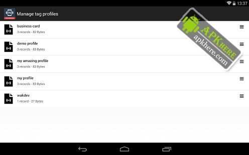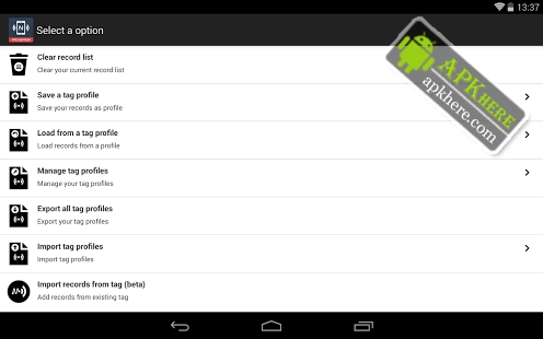 NFC Tools Pro Edition allows you to import your records or tasks directly from an existing NFC tag. You can edit your tag very quickly. Also you can run directly your tasks profile without NFC tags