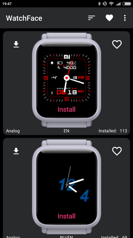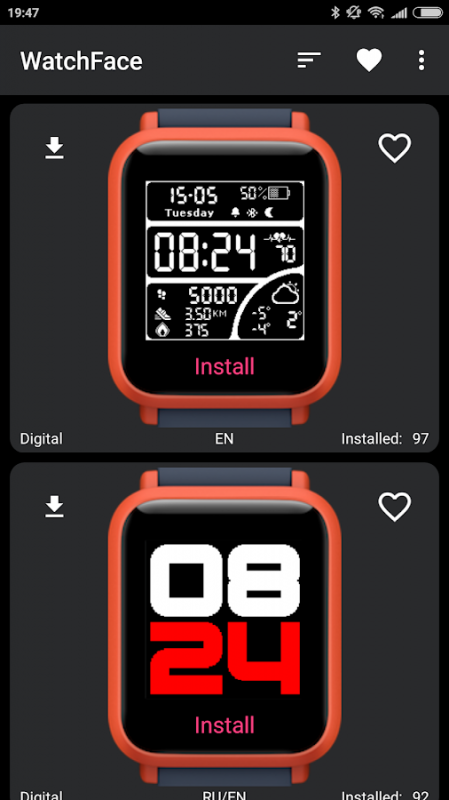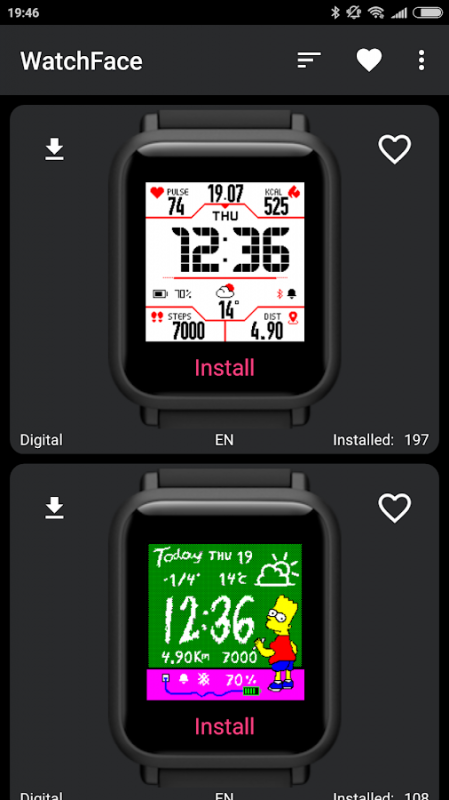 2. Find the WatchFace you like and press Install