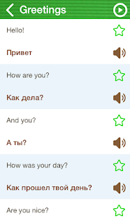In the Phrasebook, you can learn Russian daily words, phrases and conversation sentences for free. You can search phrases in two direction, i.e. English to Russian or