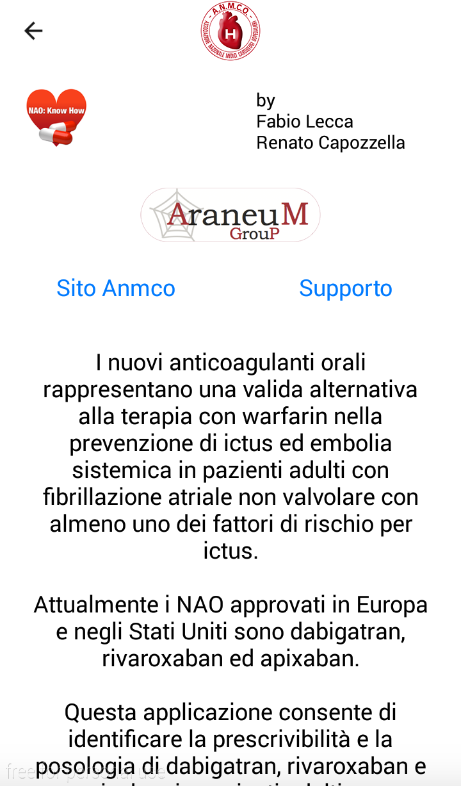 Questa applicazione consente di identificare la prescrivibilità e la posologia di dabigatran, rivaroxaban e apixaban in pazienti adulti con fibrillazione atriale non