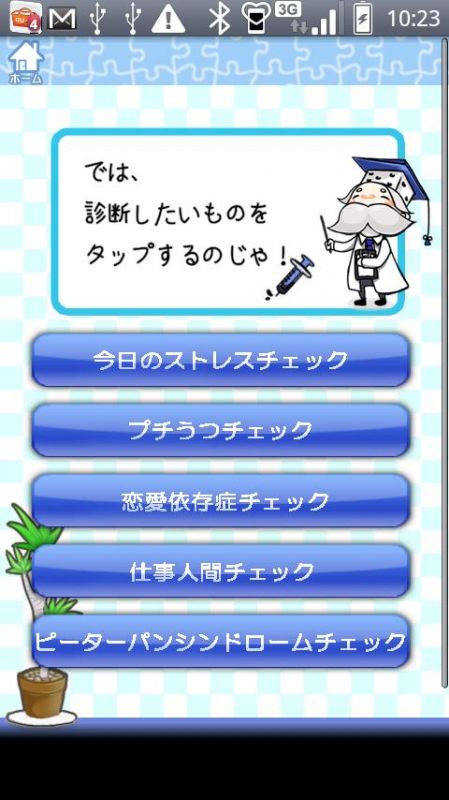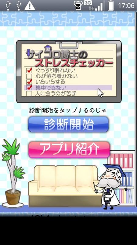 あなたの「ココロ」の健康状態(メンタルヘルス)を「心のプロ」であるサイコロ博士が診断してくれるアプリです。