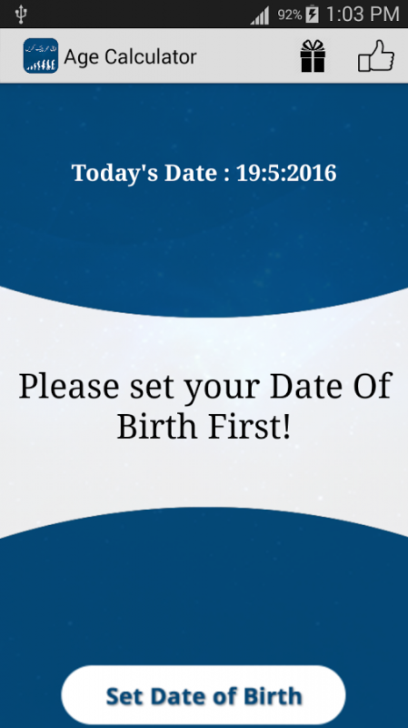 Start age calculator app and set your date birth. After this age calcolator will calculate your actual age in days, months and years.