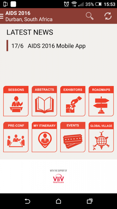 The mobile app for the 21st International AIDS Conference (AIDS 2016) in Durban, South Africa, from 18 July to 22 July 2016.