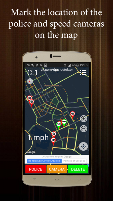 With the "Police Detector" application, you can mark the location of speed cameras and police patrols on the map, as well as see their location marked by other users of